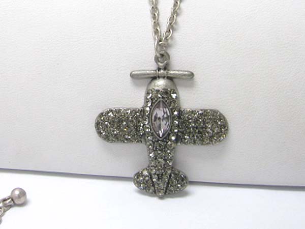 Crystal airplain pendant long necklace