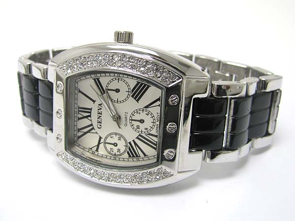 Designer style crystal stud acryl and metal band watch