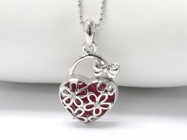 Made in korea whitegold plating heart handbag pendant necklace