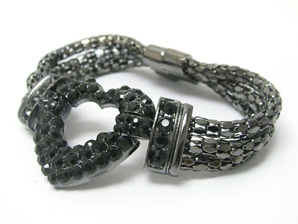 Crystal stud heart and triple metal chain link magnetic clasp bracelet