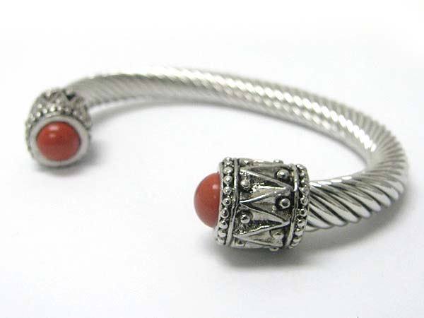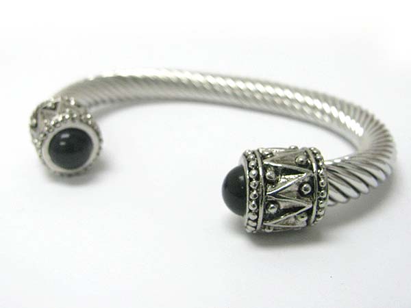 Stone edge metal cable bangle
