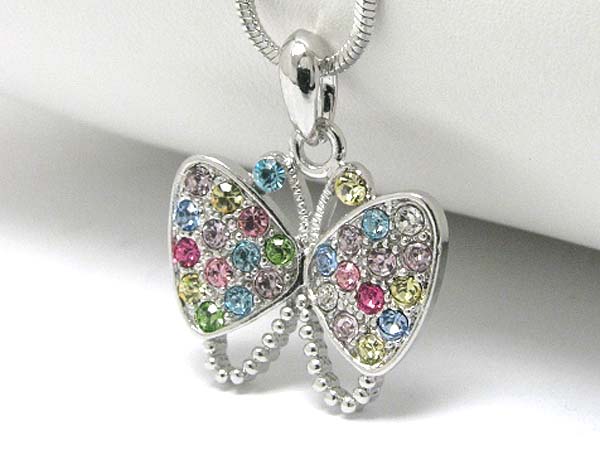 WHOLESALE MADE IN KOREA WHITEGOLD PLATING CRYSTAL STUD BUTTERFLY PENDANT NECKLACE 360377