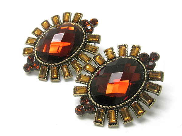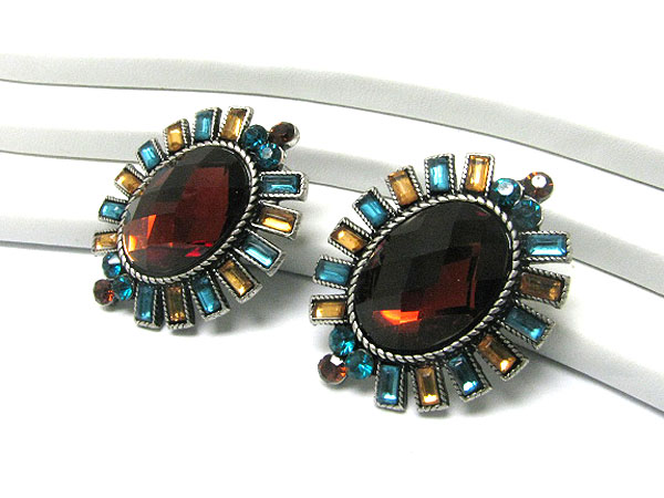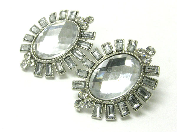 Crystal stud oval button earring