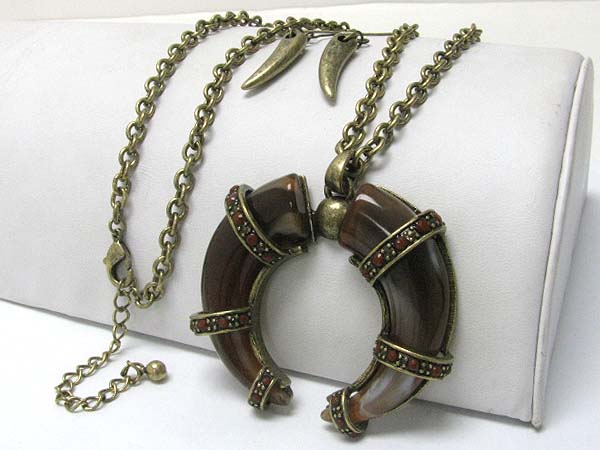 WHOLESALE DUAL CRYSTAL STUD HORN DANGLE LONG CHAIN NECKLACE EARRING SET 360602
