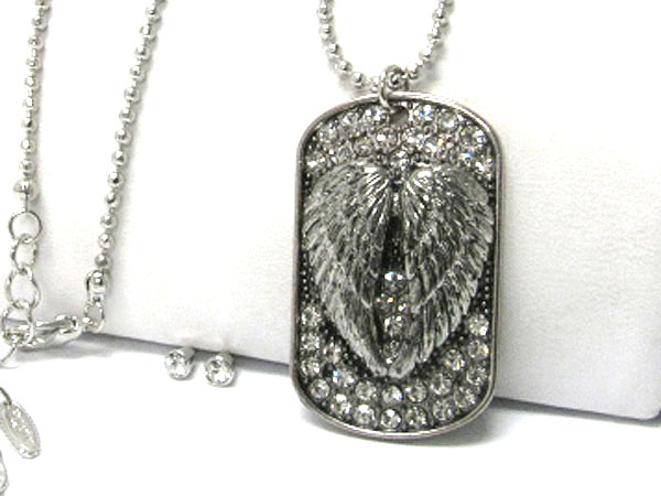 WHOLESALE CRYSTAL STUD WINGS THEME METAL DOG TAG PENDANT NECKLACE 360619