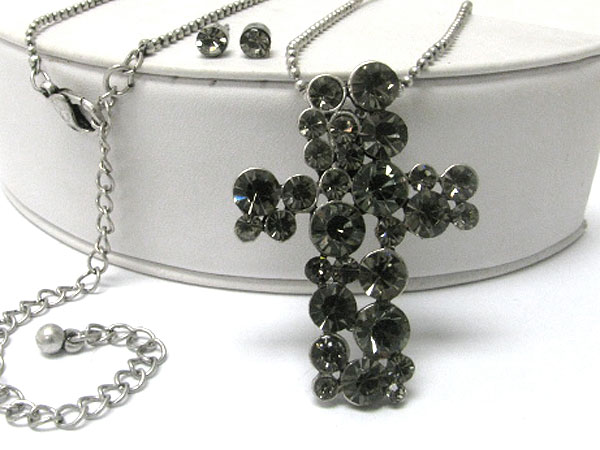 WHOLESALE CRYSTAL BUBBLED LARGE CROSS PENDANT LONG CHAIN NECKLACE EARRING SET 360646
