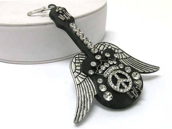 Crystal and metal peace wing crown deco large guitar pendant
