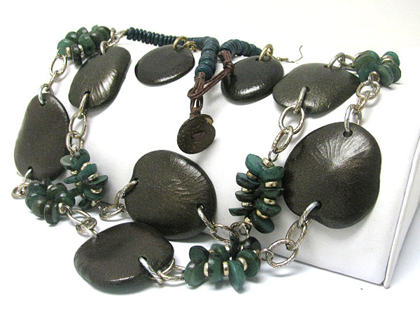 WHOLESALE ECO FRIENDLY WOODEN NUGGET AND METAL CAHIN LINK LONG NECKLACE EARRING SET 360764