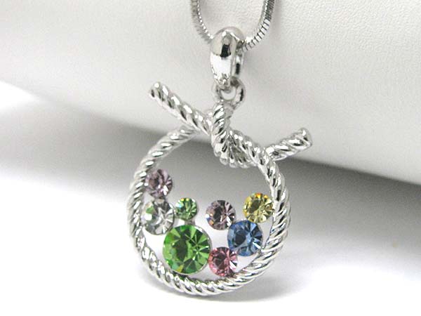 WHOLESALE MADE IN KOREA WHITEGOLD PLATING CRYSTAL BUBBLE ON TIED ROPE PENDANT NECKLACE 361025