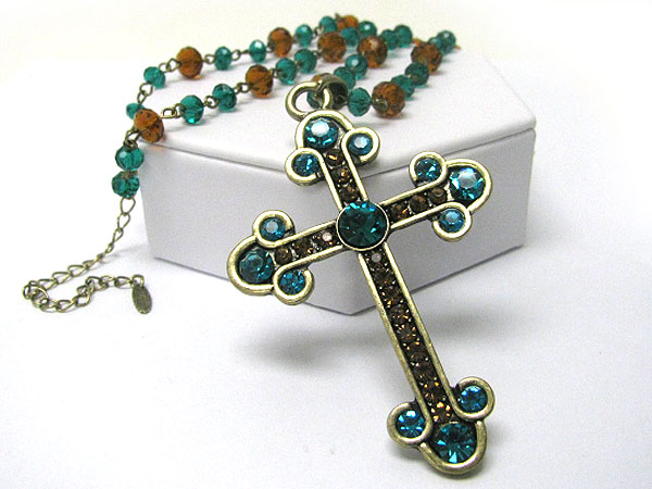 WHOLESALE CRYSTAL DECO CROSS PENDANT AND BEADS CHAIN NECKLACE 361061