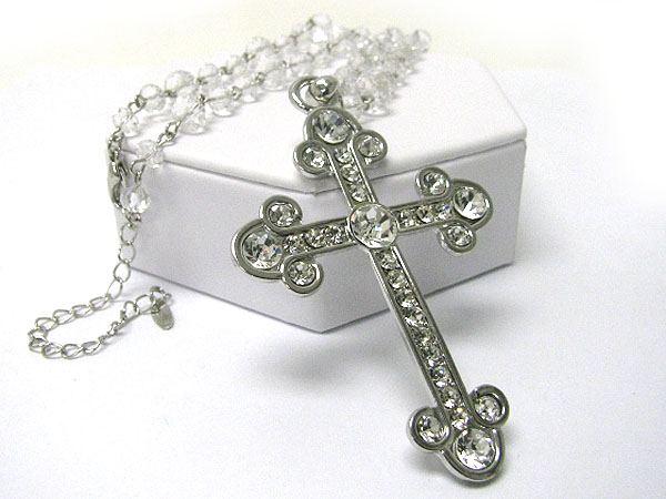 Crystal deco cross pendant and beads chain necklace