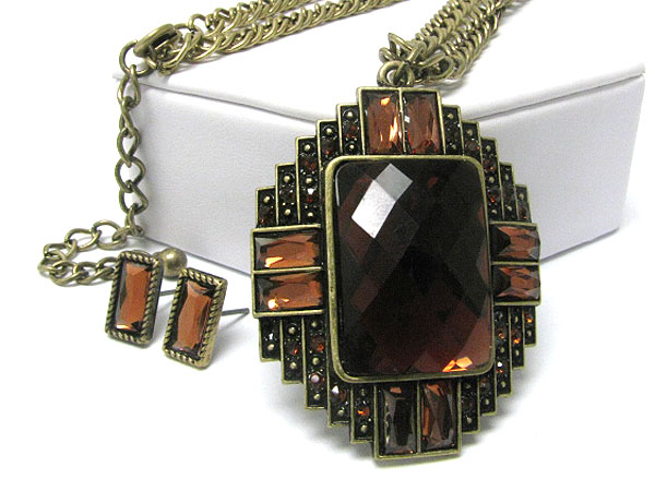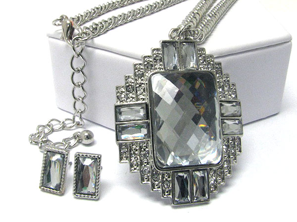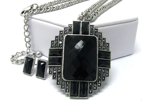 WHOLESALE CRYSTAL AND FACET GLASS DECO PENDANT LONG NECKLACE EARRING SET 361128