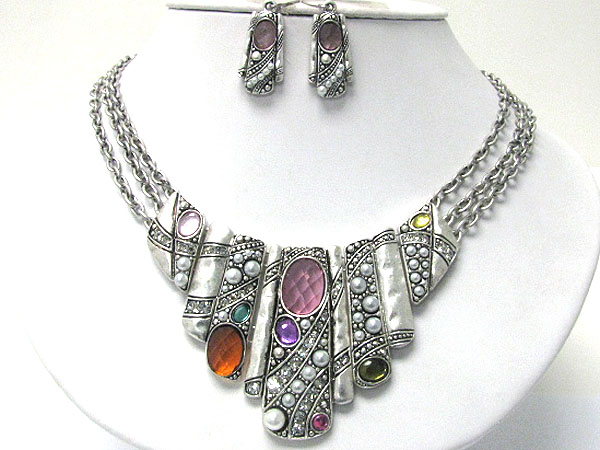 WHOLESALE CRYSTAL AND ACRYL STONE DECO METAL ART BAR DROP NECKLACE EARRING SET 361154