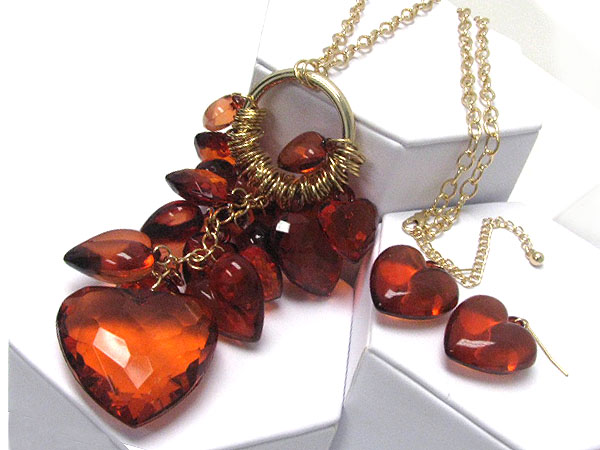 WHOLESALE MULTI FACET ACRYL PUFFY HEART DANGLE NECKALCE EARRING SET 361551