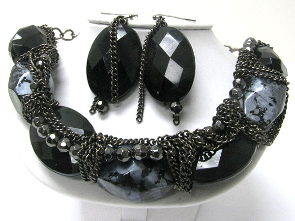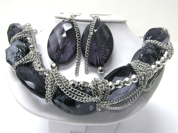 WHOLESALE FACET ACRYL CHUNKY BEADS AND METAL CHAIN TANGLE NECKALCE EARRING SET 361552