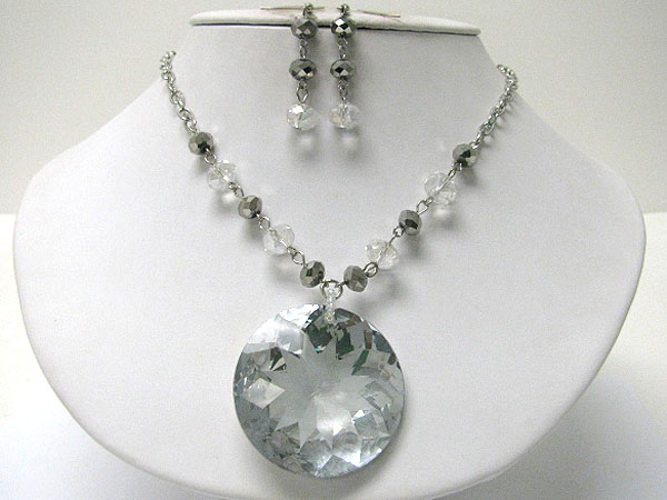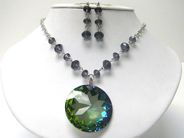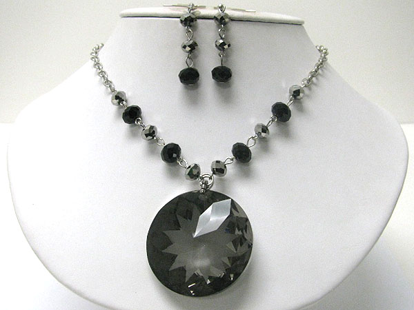 WHOLESALE FACET LARGE GLASS ROUND METAL NECKLACE EARRIGN SET 361606