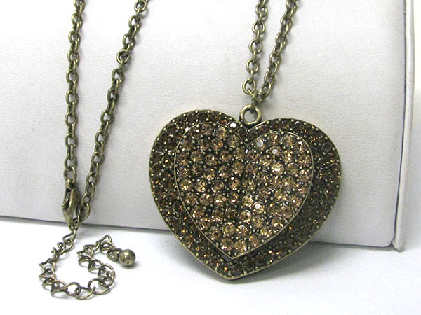 WHOLESALE BURNISH METAL CRYSTAL STUD DOUBLE LAYER HEART PENDANT LONG NECKLACE 361625