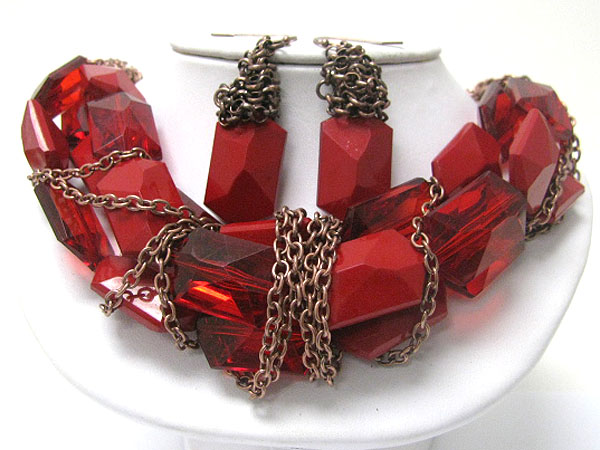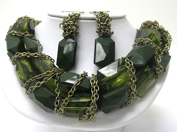 WHOLESALE CHUNKY ACRYL STICK AND METAL CHAIN TANGLE NECKLACE EARRING SET 361723