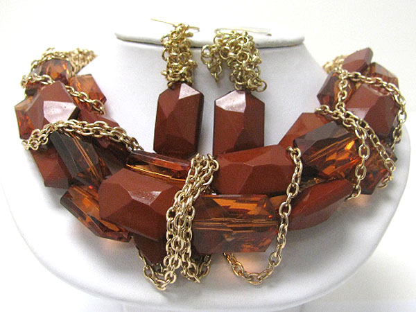 Chunky acryl stick and metal chain tangle necklace earring set