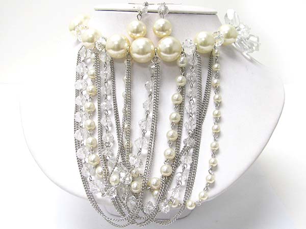 Glass beads and pearl ball hanging drop necklace earring set