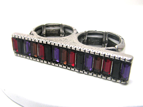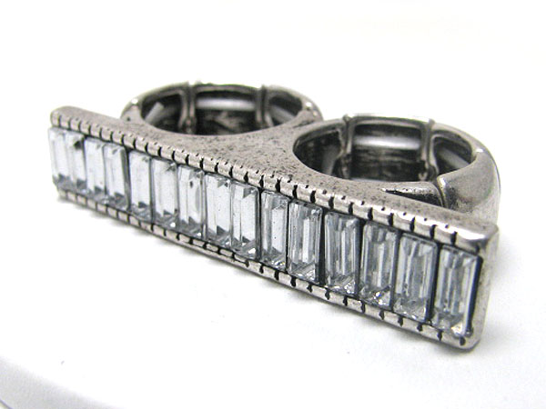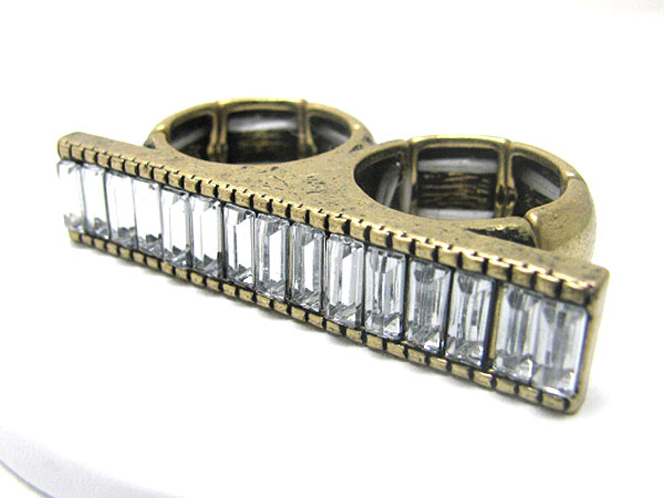 WHOLESALE GLAM PUNK ROCK BARGUETTE CRYSTAL DUAL FINGER STRETCH RING 362163