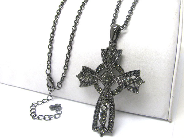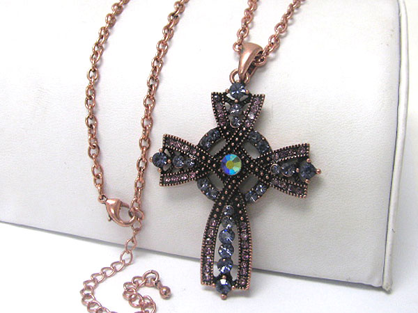 WHOLESALE CRYSTAL STUD CROSS PENDANT LONG NECKLACE 362201