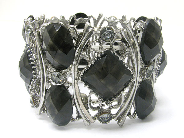 Crystal and glass deco metal stretch bracelet
