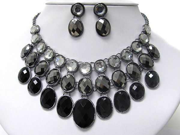 WHOLESALE TRIPLE LEVEL FACET OVAL GLASS DROPBIB STYLE NECKLACE EARRING SET 362273