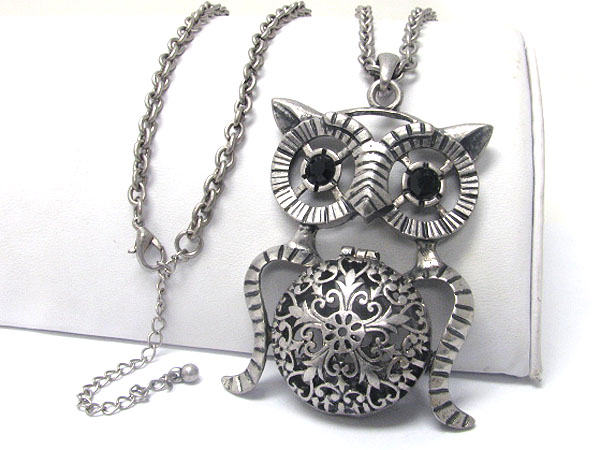 WHOLESALE METAL FILIGREE OWL PENDANT LONG NECKLACE 362477