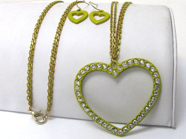 WHOLESALE CRYSTAL STUD COLORED METAL OPEN HEART PENDANT NECKLACE EARRING SET 362531