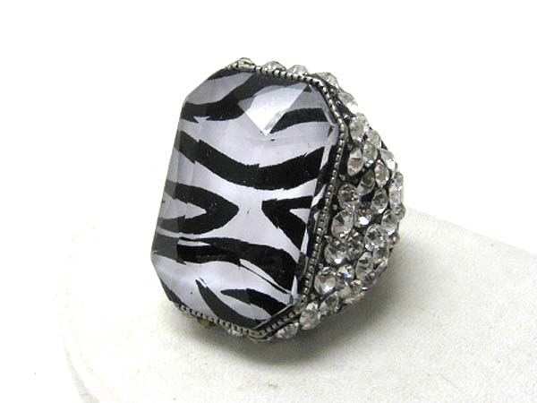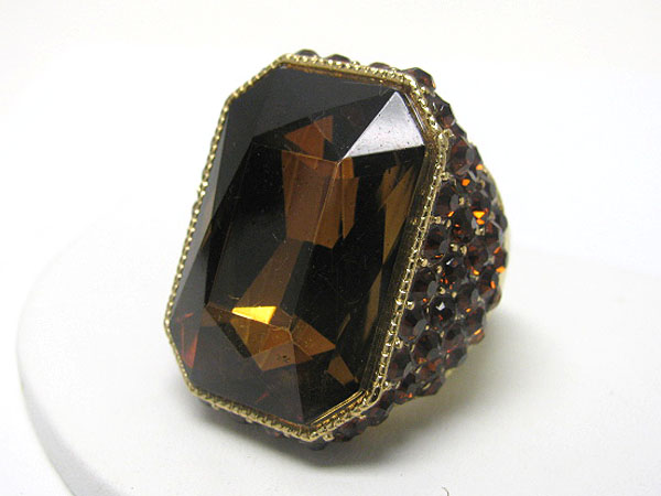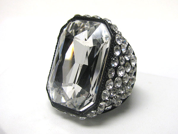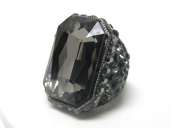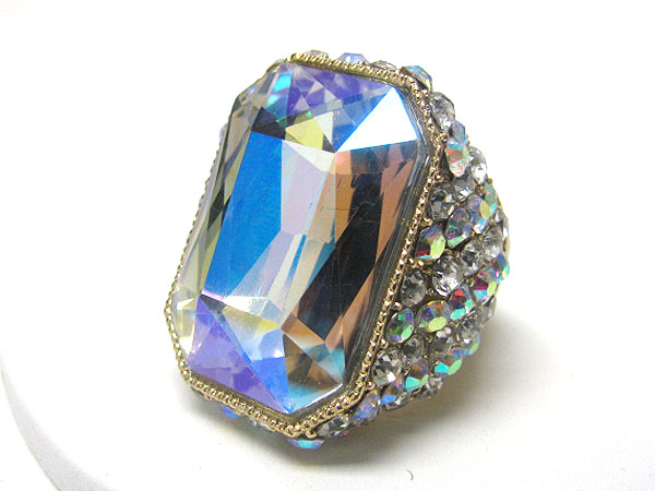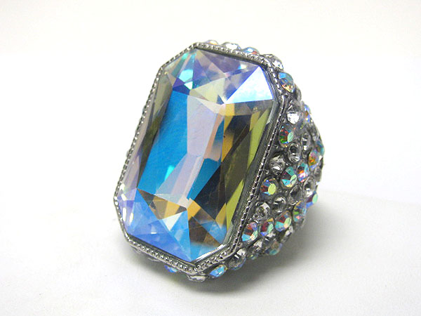 WHOLESALE FACET GLASS RECTANGLE AND CRYSTAL SIDE PUFFY STRETCH RING 362783