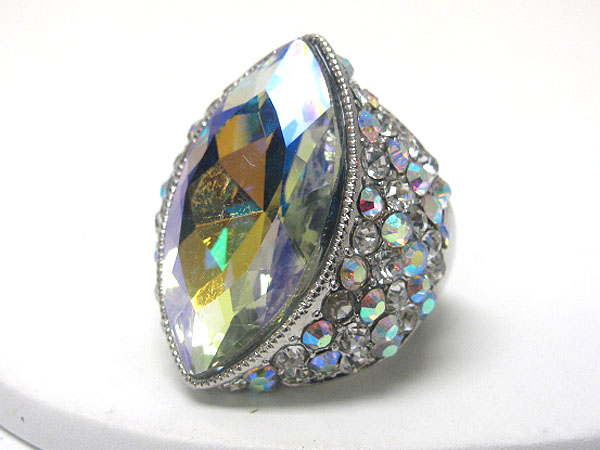 WHOLESALE FACET GLASS ARROWHEAD AND CRYSTAL SIDE PUFFY STRETCH RING 362796