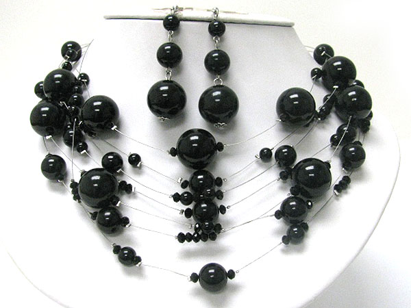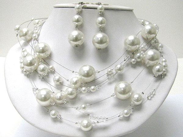 WHOLESALE MULTI PEARL BEADS ILLUSION NECKLACE EARRING SET 362907