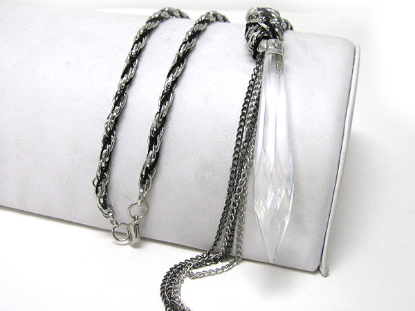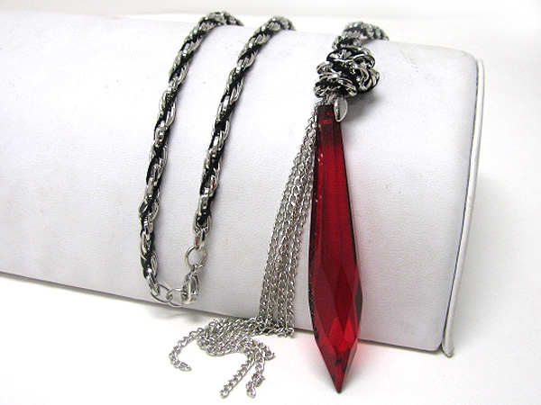 Sharp and long glass arrowhead dangle braided long chain necklace