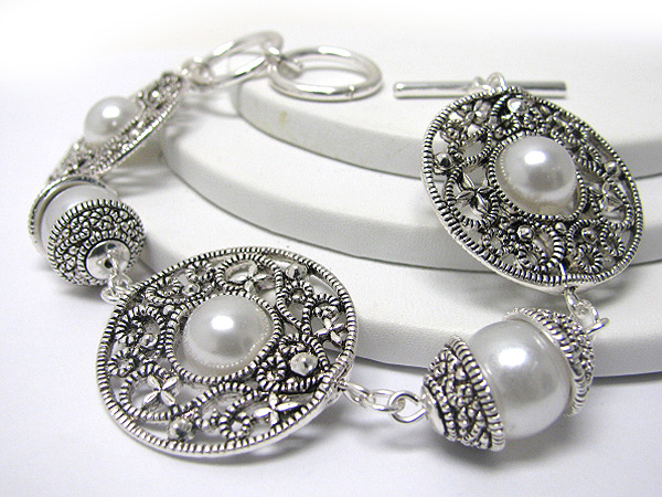WHOLESALE ROUND STONE AND CRYSTAL STUD FILIGREE META LDISK LINK BRACELET 363073