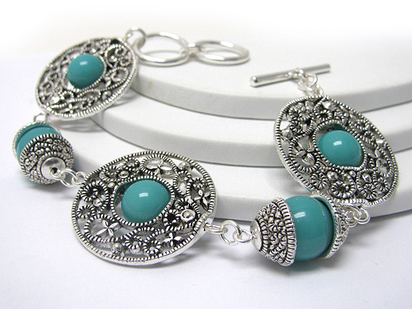 Round stone and crystal stud filigree meta ldisk link bracelet