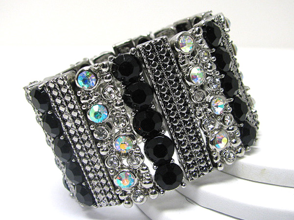 Mixed crystal stud wide metal stretch bracelet