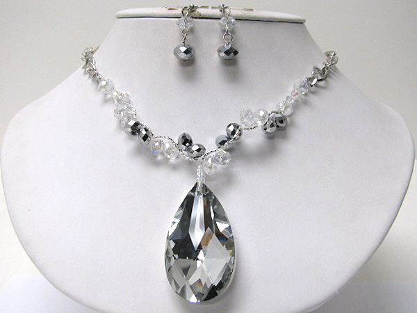 WHOLESALE LARGE FACET GLASS TERAR DROP AND BEADS NECKALCE EARRING SET 363193