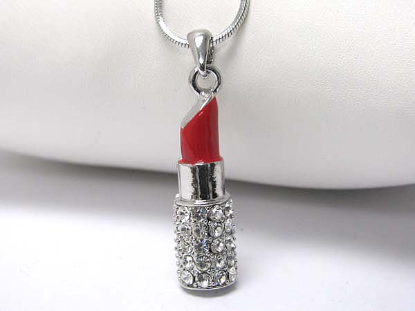 WHOLESALE MADE IN KOREA WHITEGOLD PLATING CRYSTAL STUD LIPSTICK PENDANT NECKLACE 363326