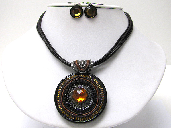 WHOLESALE ANTIQUE STYLE CRYSTAL STUD METAL ART ROUND MEDALLION NECKLACE EARRING SET 363416