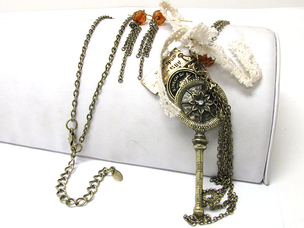 WHOLESALE ANTIQUE METAL KEY PENDANT LONG CHAIN NECKLACE EARRING SET 363509