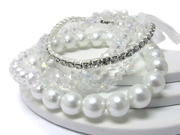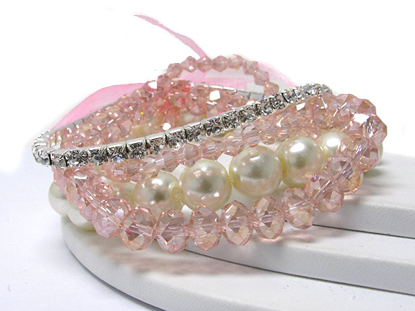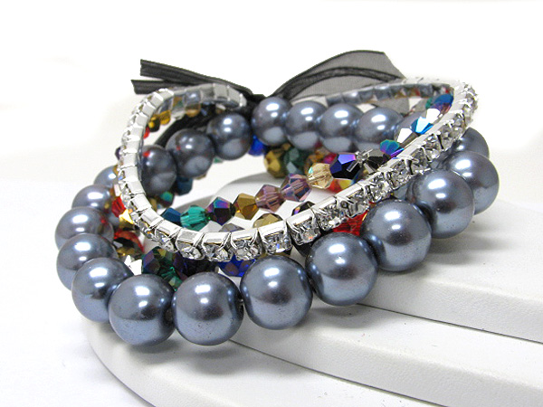 WHOLESALE MULTI ROW PEARL BALL AND RHINESTONE MIX STRETCH BRACELET 363618