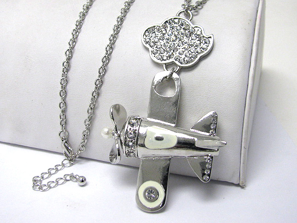 WHOLESALE CRYSTAL STUD AIRPLANE PENDANT LONG NECKLACE 363655