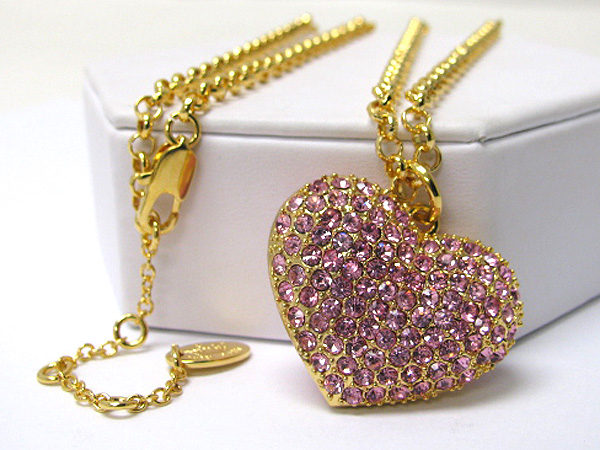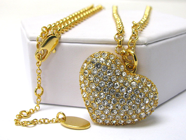 WHOLESALE CRYSTAL STUD PUFFY HEART PENDANT NECKLACE 363734
