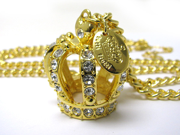 WHOLESALE CRYSTAL STUD LARGE CROWN PENDANT LONG NECKLACE 363750