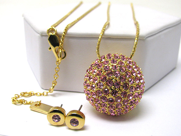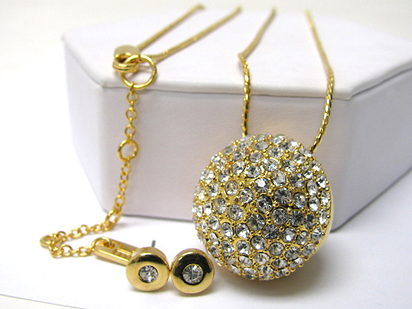 WHOLESALE CRYSTAL STUD LARGE BALL PENDANT LONG NECKLACE EARRING SET 363753