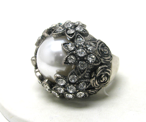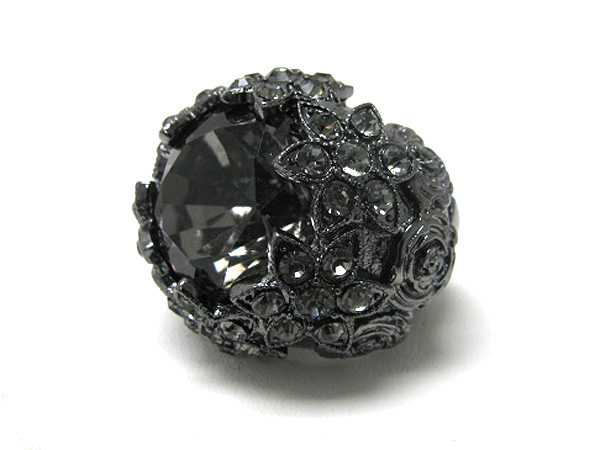 Facet stone and crystal puffy stretch ring