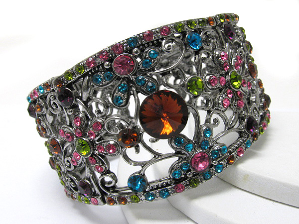 WHOLESALE CRYSTAL AND METAL FILIGREE CUFF BANGLE 363808