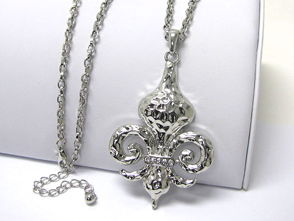 WHOLESALE CRYSTAL DECO HAMMERED METAL FLUER DE LIS NECKLACE 364769