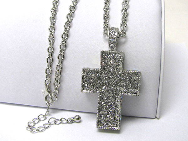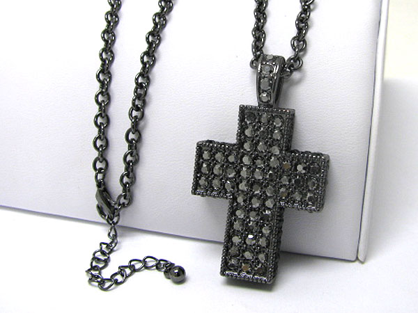 Crystal deco cross long necklace